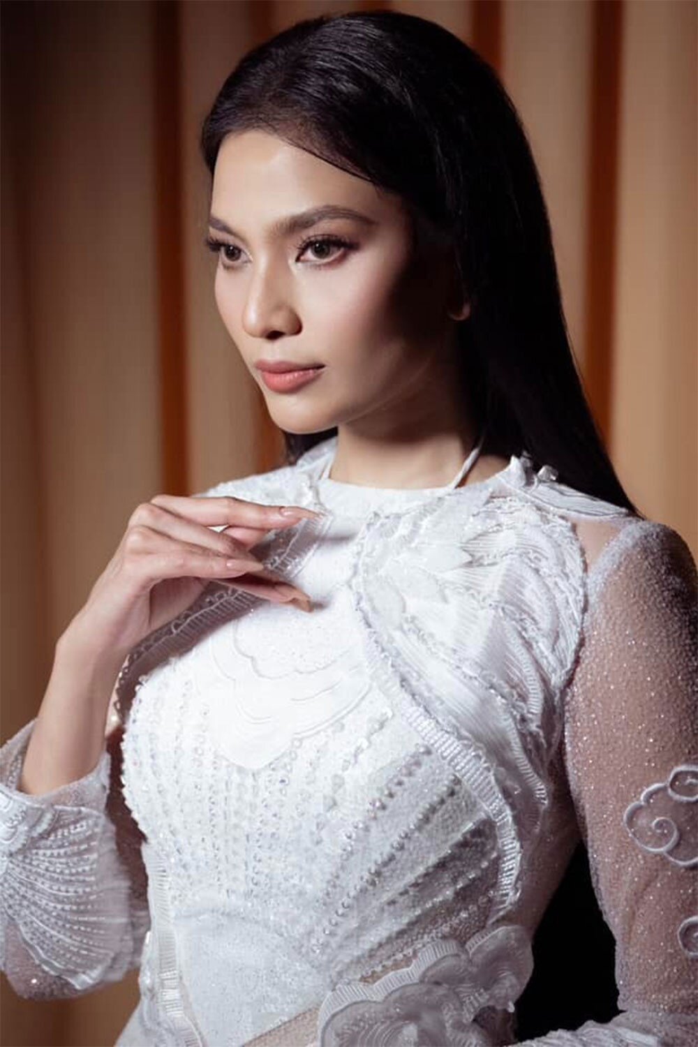 Nếu Phương Nhi thiên về sự ngọt ngào thì á hậu Tú Anh lại nổi bật với vẻ sang trọng đầy cuốn hút. Khuôn mặt trái xoan cùng thần thái trưởng thành giúp cô dễ dàng tỏa sáng trong bất cứ khung hình nào. Đôi mắt sắc nhưng không lạnh, sống mũi thẳng và tổng thể đường nét cân đối tạo cho Tú Anh vẻ đẹp đài các vừa cổ điển vừa hiện đại.