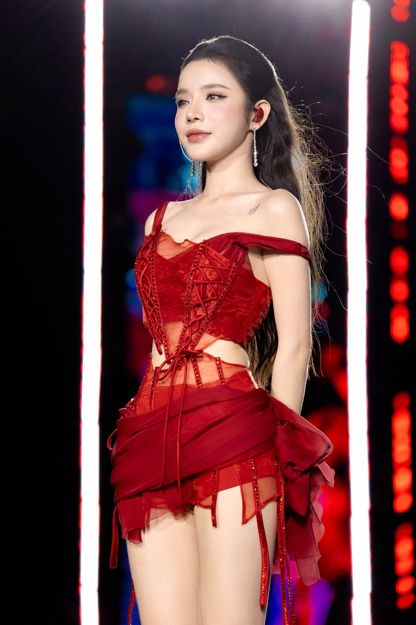 Bên cạnh tài năng âm nhạc, LyLy còn ghi điểm nhờ nhan sắc đẹp như AI. Từ mái tóc uốn nhẹ bay bổng, lớp trang điểm trong trẻo, đến thần thái dịu dàng, nữ ca sĩ toả sáng theo cách rất riêng. Gương mặt nhỏ nhắn, đường nét hài hòa, đôi mắt biết nói cùng nụ cười nhẹ khiến nhiều khán giả nhận xét: đẹp như nhân vật game bước ra đời thật.
