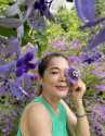 Nữ ca sĩ Mỹ Lệ nhiều lần khoe khu vườn tuyệt đẹp của mình mà cô gọi là "my secret garden". Mới đây cô lại đăng tải loạt ảnh làm nhiều người ngất ngây. Cô đứng giữa những chùm hoa mai xanh, phía sau là linh sam tím ngắt.
