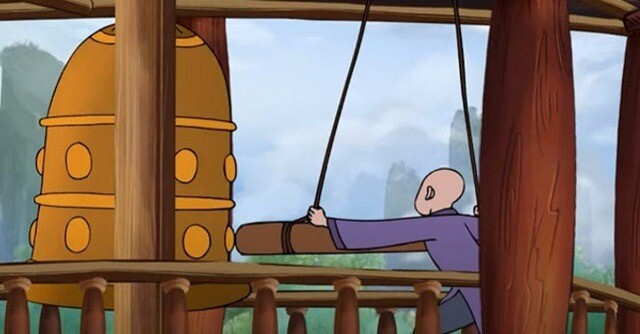 Khi gió thổi vào bức trướng lung lay, làm cho cái chuông phát ra tiếng kêu rất êm tai, mà gió ở đây thì không thiếu, gió biển luôn luôn thổi vào. Nhà sư già ngồi trên hành lang, ngắm biển, tai nghe tiếng chuông trong trẻo, êm ái, mỉm cười khoan khoái.