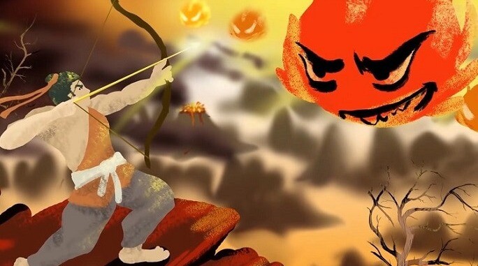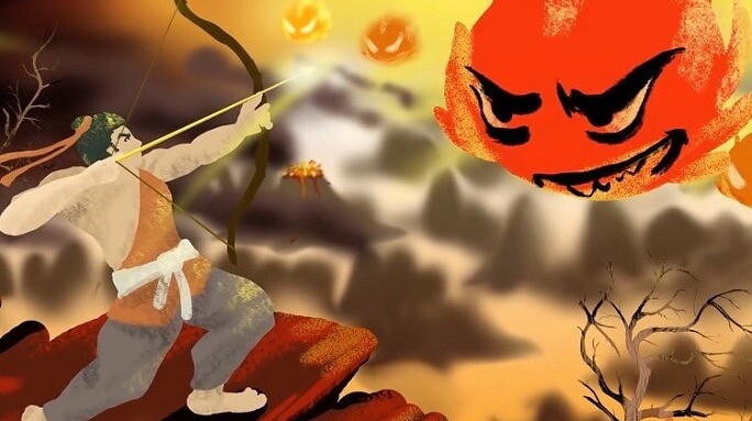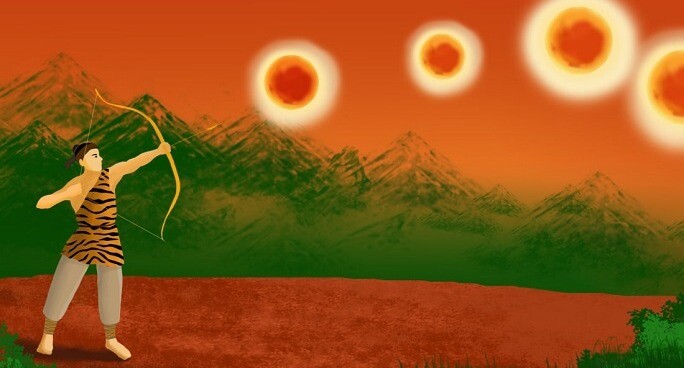 – Hãy bắn rơi sáu mặt trời và cứu lấy thần dân của ta.