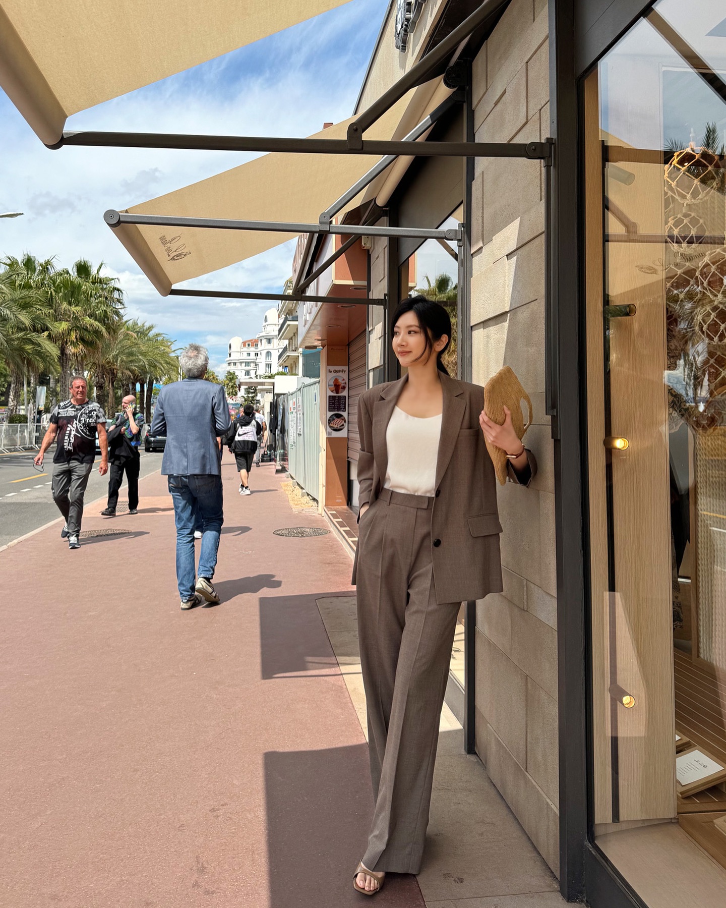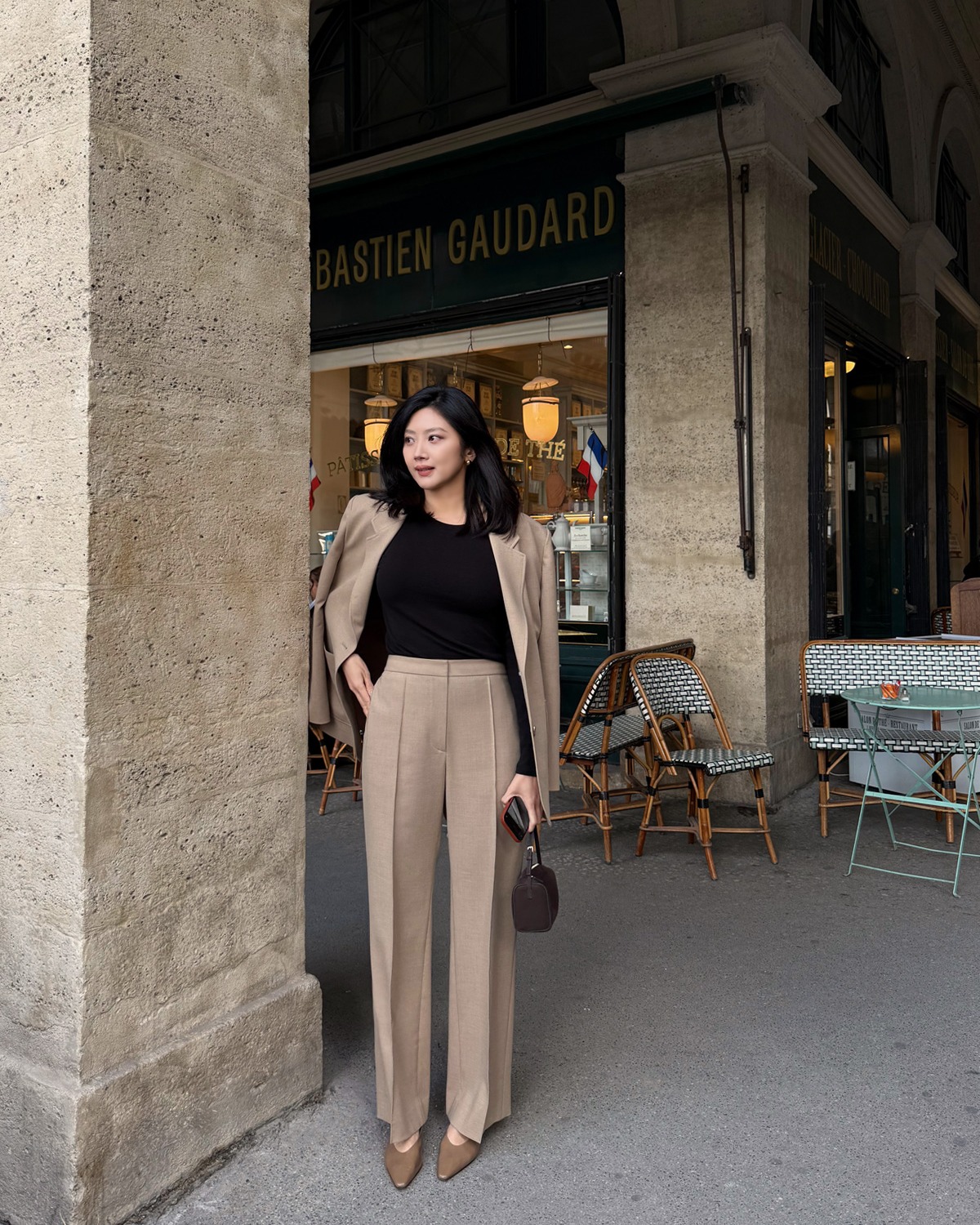 Khi phối áo họa tiết với blazer, hãy giữ phần còn lại tối giản: quần suông, jeans hoặc chân váy đơn sắc là đủ. Đây là bí quyết giúp tổng thể hài hòa, tinh tế mà không "dừ". Outfit này vừa phù hợp đi làm vừa cực chuẩn cho những buổi café chụp ảnh street style.