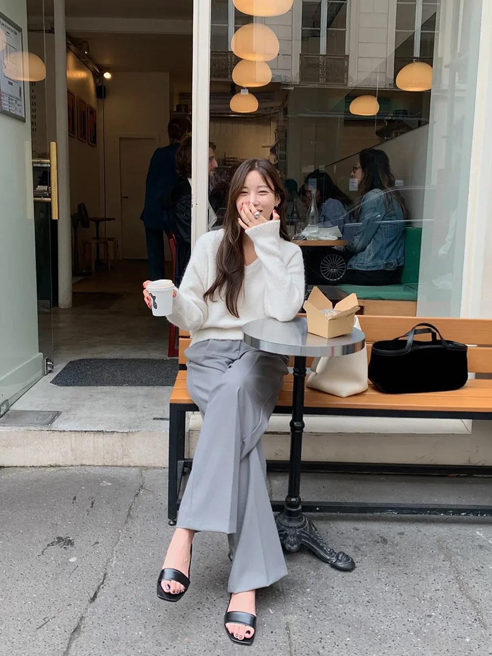 Để set đồ không quá casual, chị em nên chọn áo thun trơn màu trung tính và quần ống suông cạp cao. Khi sơ vin gọn gàng, tỷ lệ cơ thể được cải thiện rõ rệt, giúp outfit trông cao ráo và thanh lịch hơn. Đây là công thức phù hợp cho những ngày làm việc bình thường hoặc môi trường công sở không quá khắt khe về trang phục.