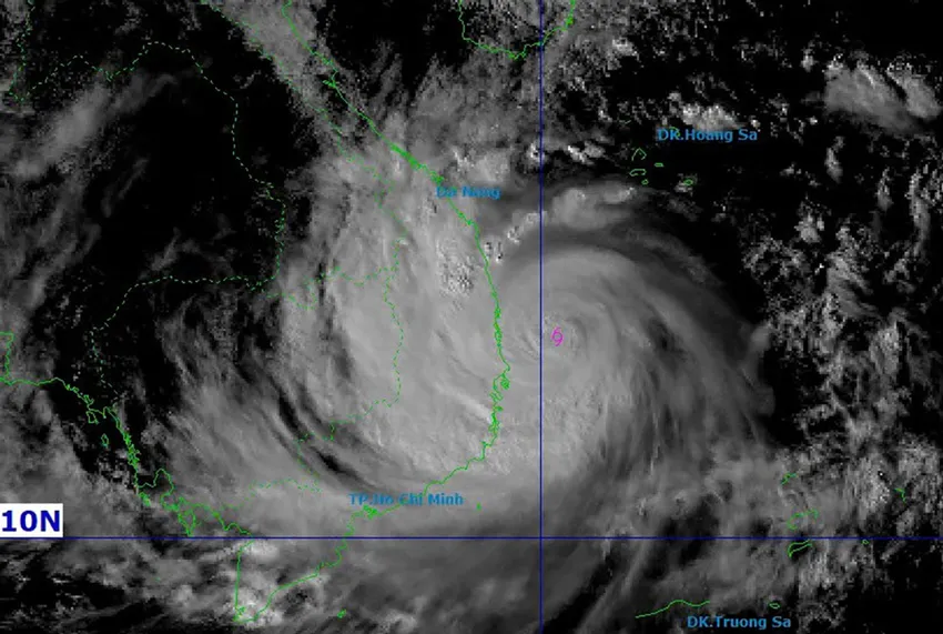 Lúc 15 giờ chiều 6-11, bão số 3 đang cách Quy Nhơn 150 km. Ảnh: TTDBKTTVQG