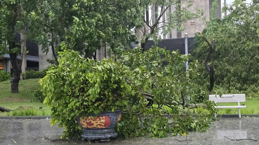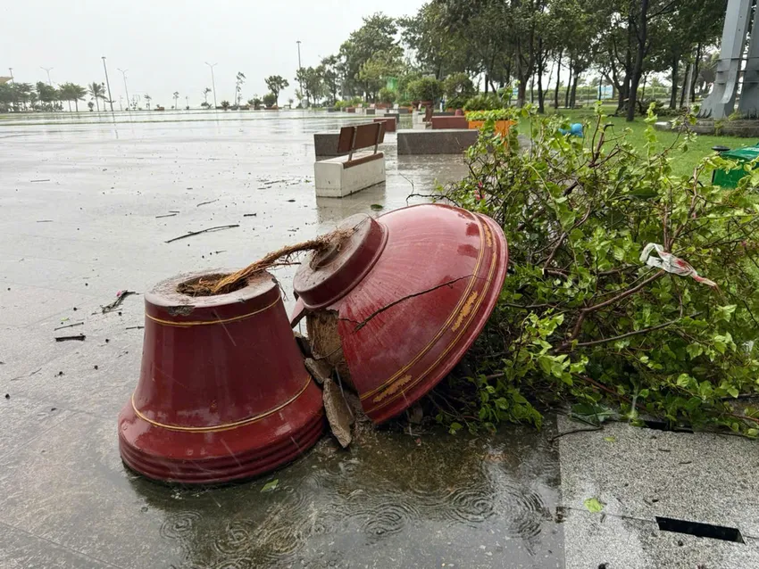 Nhiều vị trí có dự án đang xây dựng bị bão số 13 xé toạc; tôn chắn, bảng thông tin dự án bị gió thổi tan hoang. Các tuyến phố bị mất điện diện rộng.