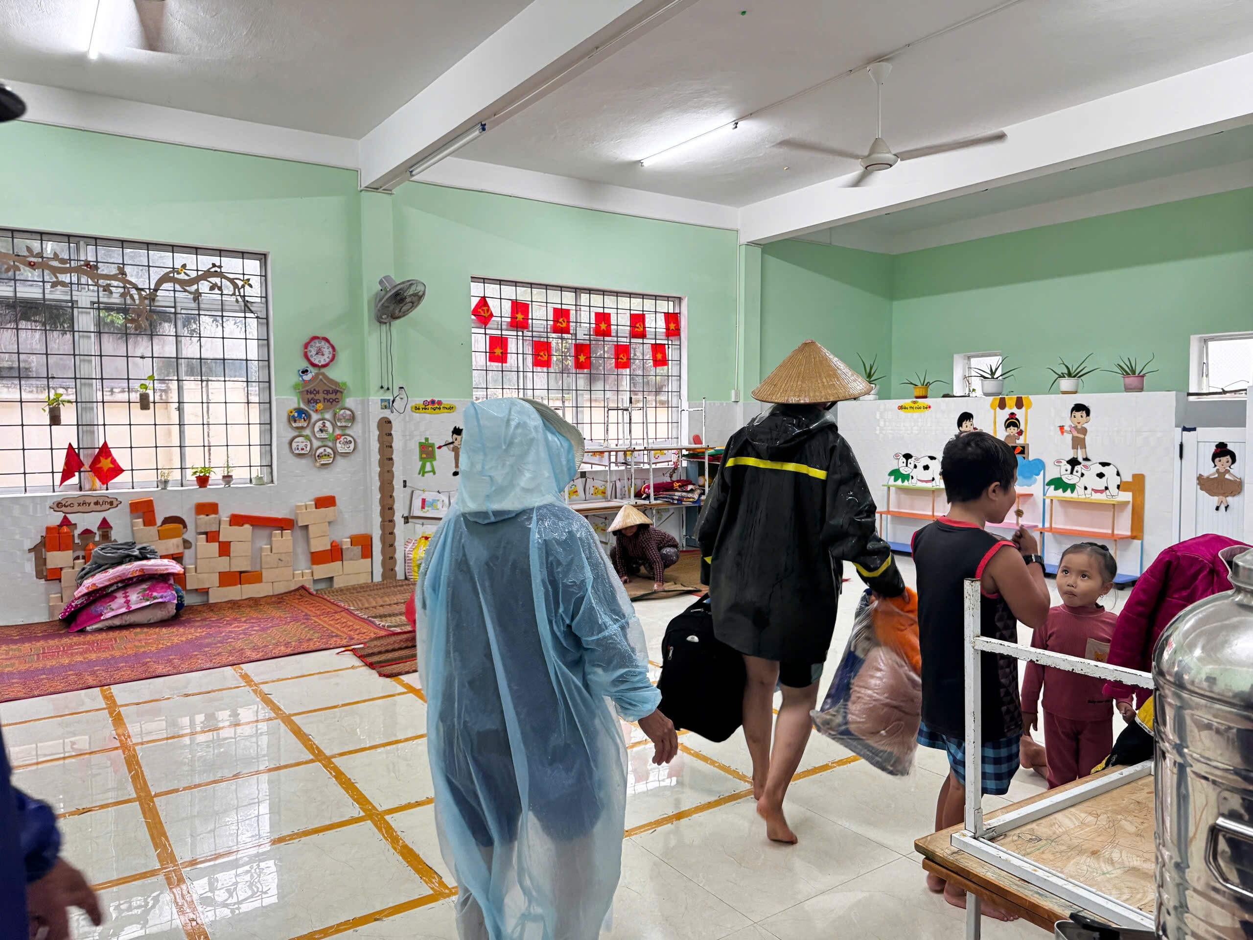 Người già, trẻ em đã được di chuyển tới nơi an toàn. Ảnh: LK