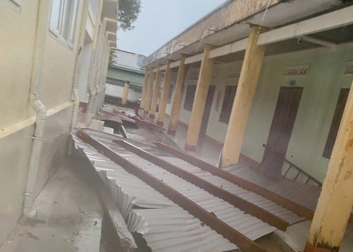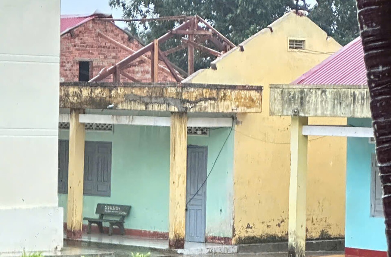 Trường tiểu học Phú Mỡ bị ảnh hưởng nặng sau bão số 13. Ảnh: TIẾN THOẠI