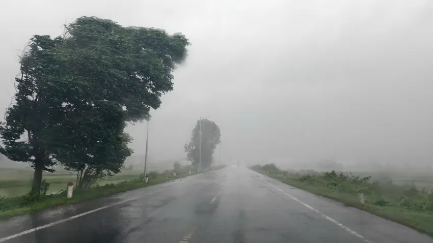 Khu vực phía Nam tỉnh Quảng Ngãi mưa bắt đầu to kèm gió mạnh dần. Ảnh: NGUYỄN YÊN